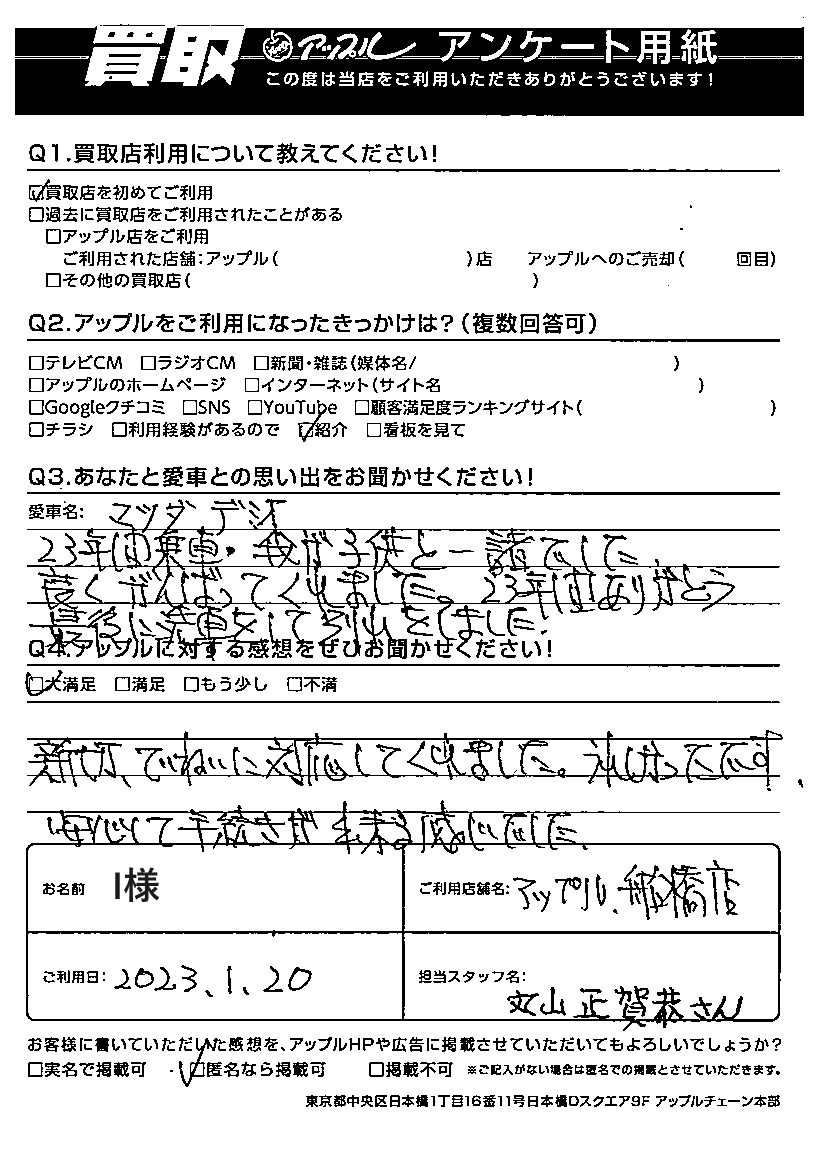 ご利用日:1/20 I 様
