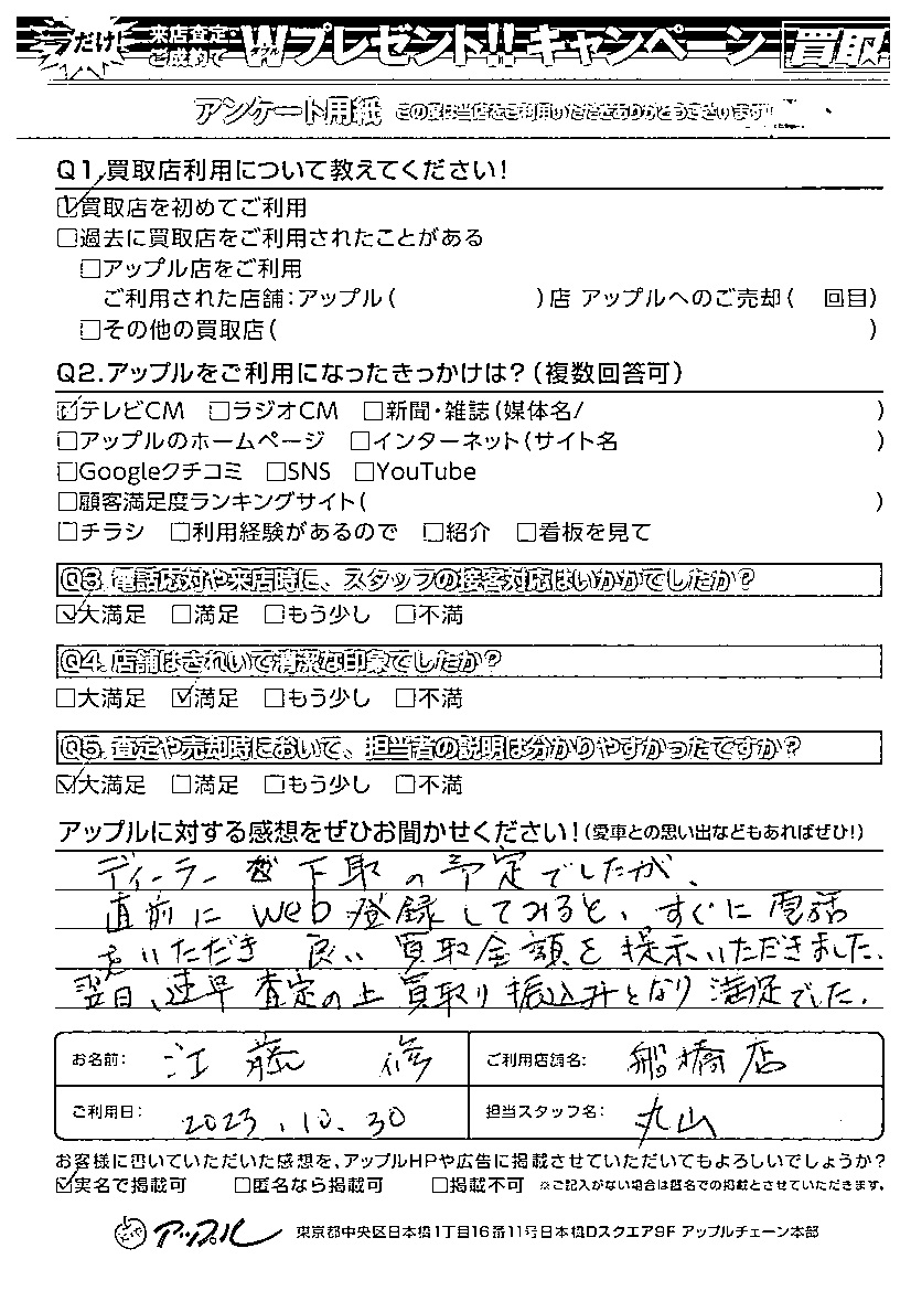 Q電話対応や来店時に、スタッフの接客対応はいかがでしたか?