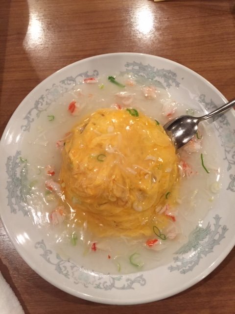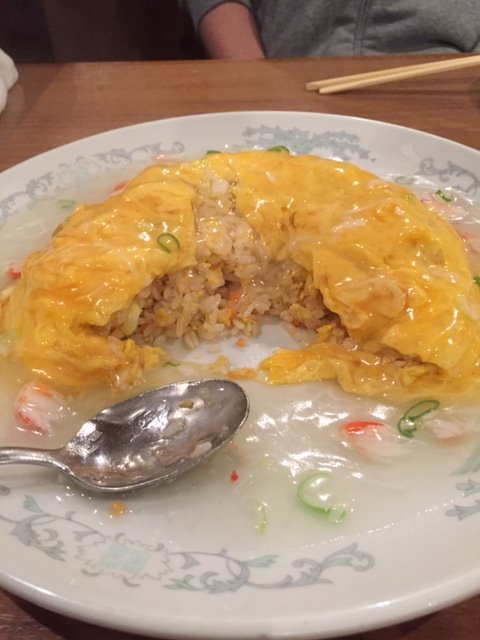 いつもはチャーハンかあんかけ焼きそばが好きで注文しますが今日はこれ。あんかけかにチャーハン。