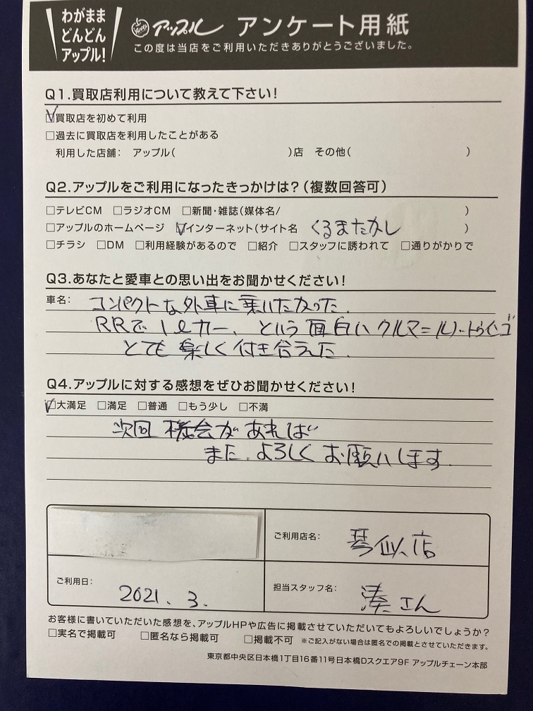 札幌市中央区 S様  車名:ルノー トゥインゴ
