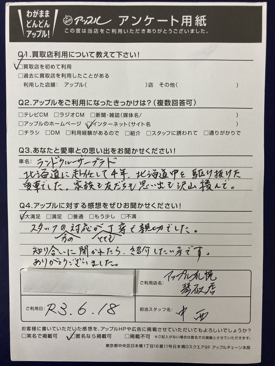 札幌市中央区 M様 車名:トヨタ ランドクルーザープラド