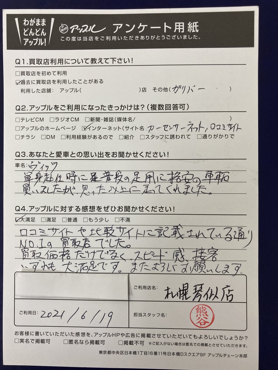 札幌市中央区 K様 車名:トヨタ ヴィッツ