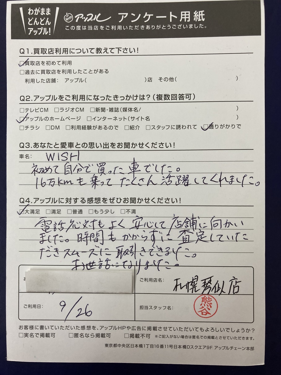 札幌市西区 S様 車名:トヨタ ウィッシュ