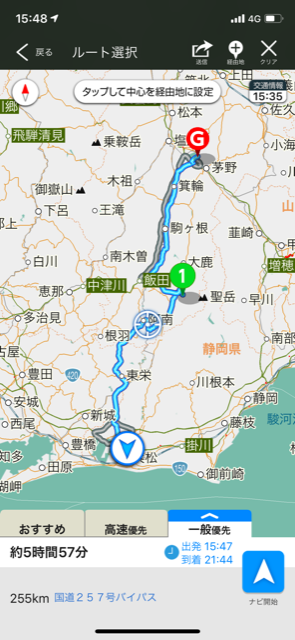 バイクには携帯を付け、グーグルマップのナビ機能で
