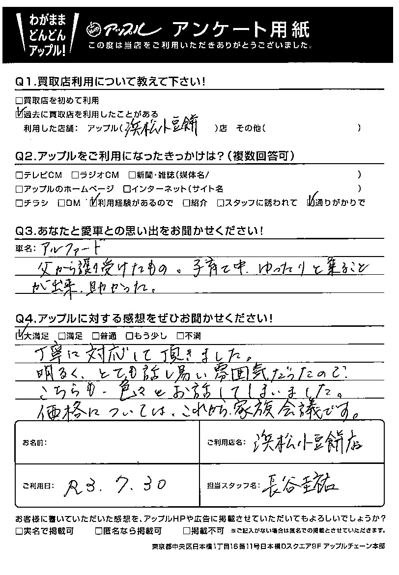 Y.F様 車名:トヨタ アルファード(H27年1月~のHYBRID含む)