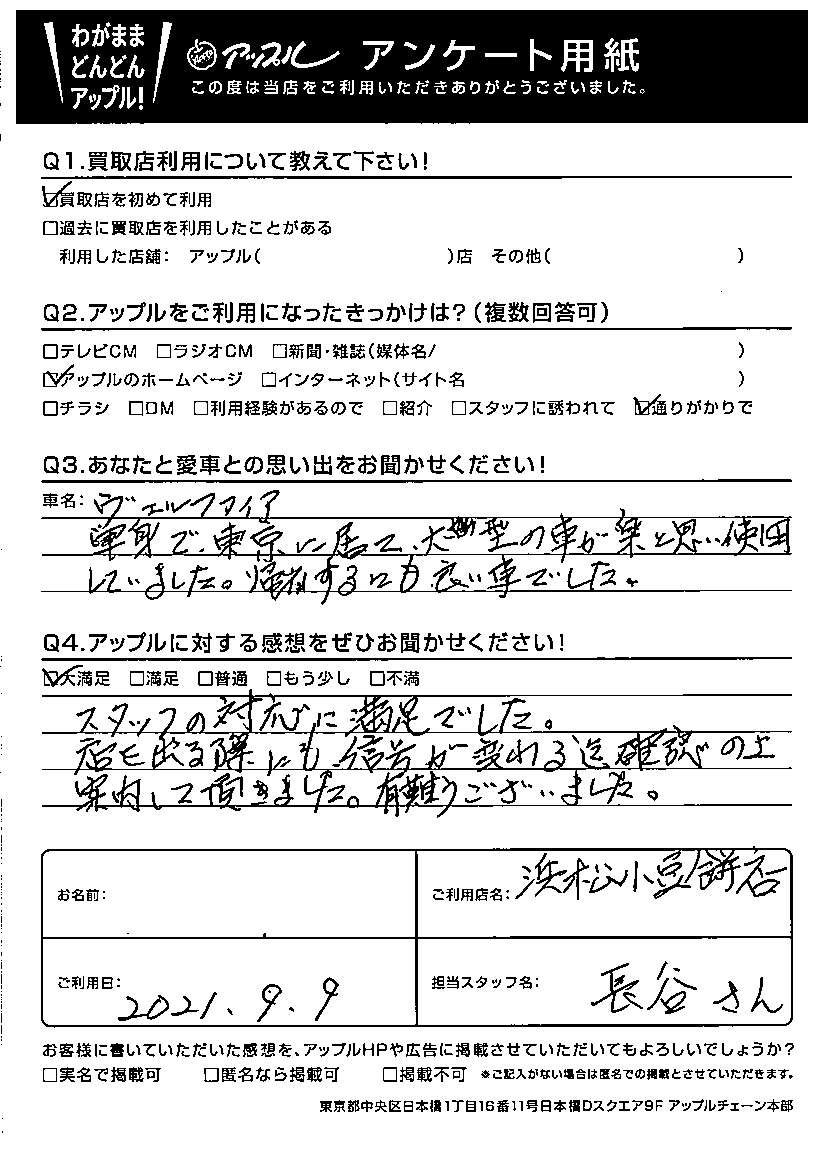 スタッフの対応に満足でした。