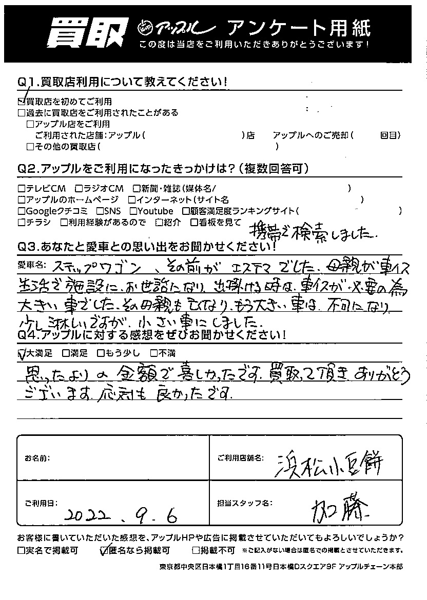 その母親も亡くなり、もう大きい車は不可になり少し淋しいですが