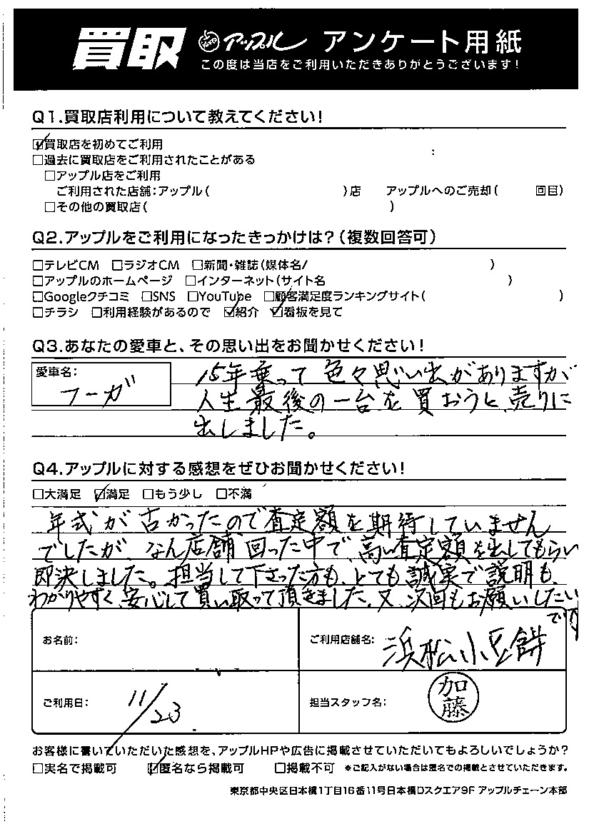 何店舗回った中で、高い査定額を出してもらい即決しました。