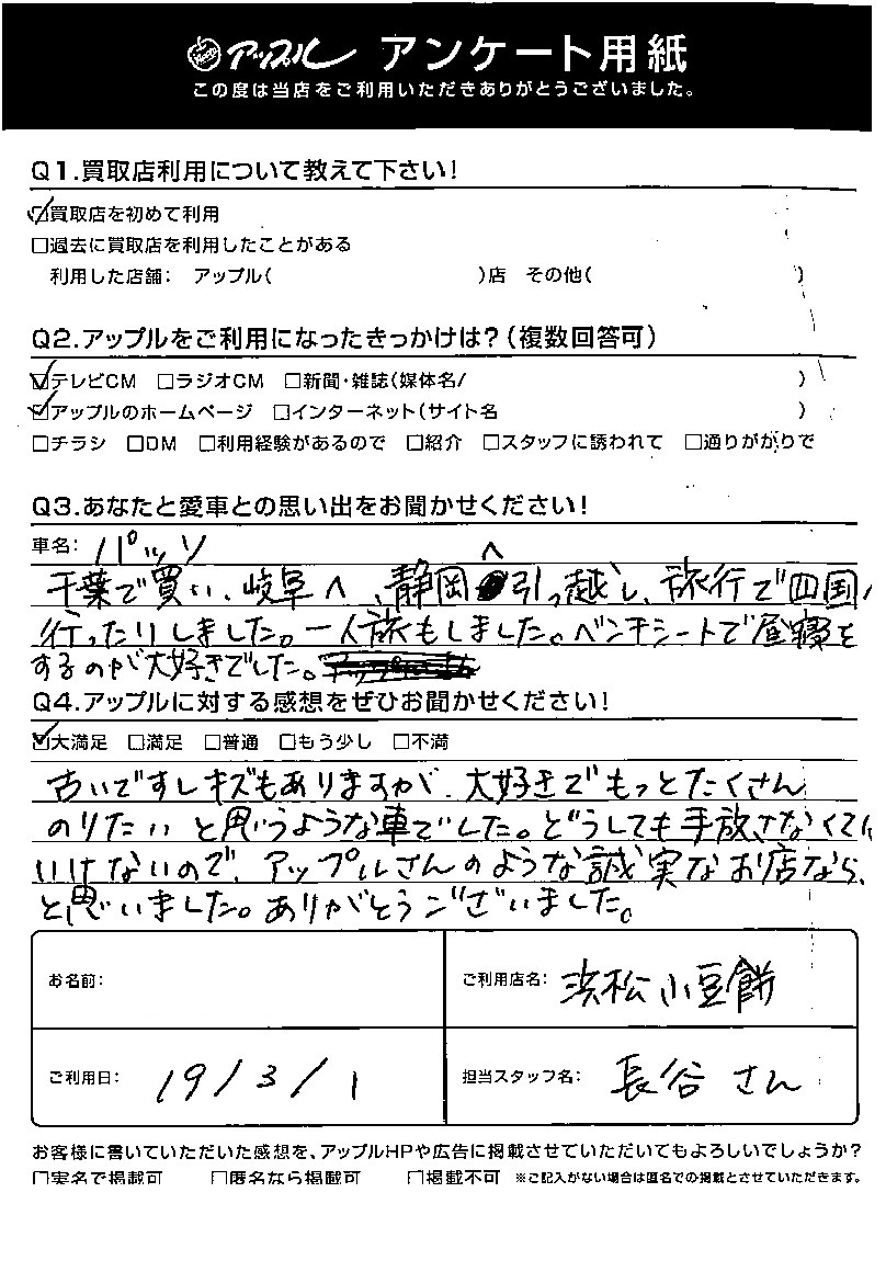 静岡県浜松市 M.S様 車名:トヨタ パッソ