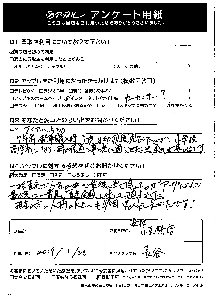 A:一括査定で6社の中で最後に来て頂いたのがアップルさんで