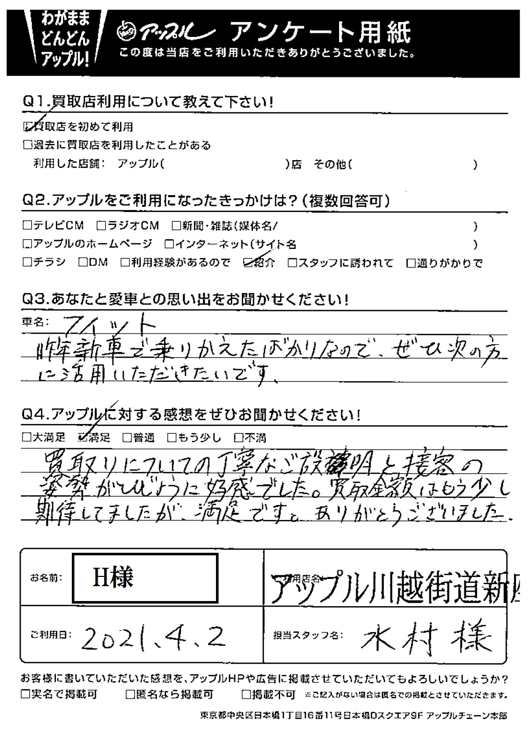 H様 車名:ホンダ フィット(H25年9月以降のハイブリッド含む)