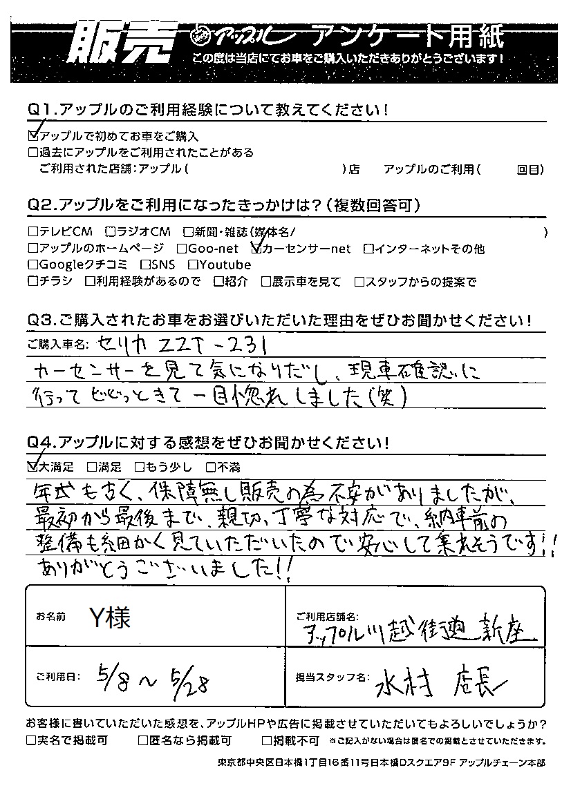 Y 様 ご購入車:セリカ ZZT-231 担当:水村店長