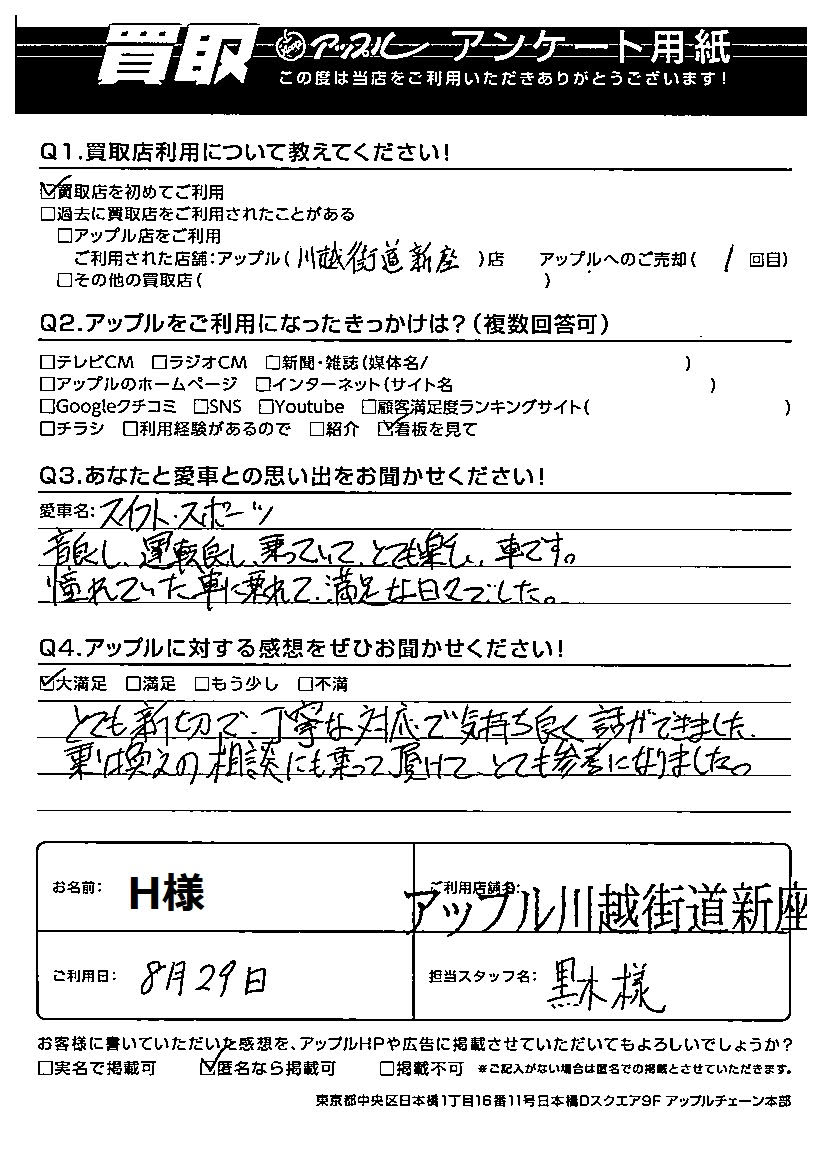 愛車:スズキ スイフトスポーツ 担当:黒木