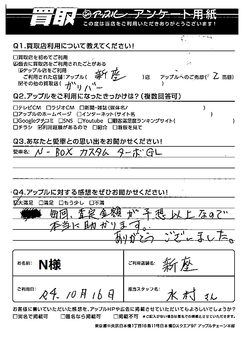 ご利用日:2022/10/16 N 様
