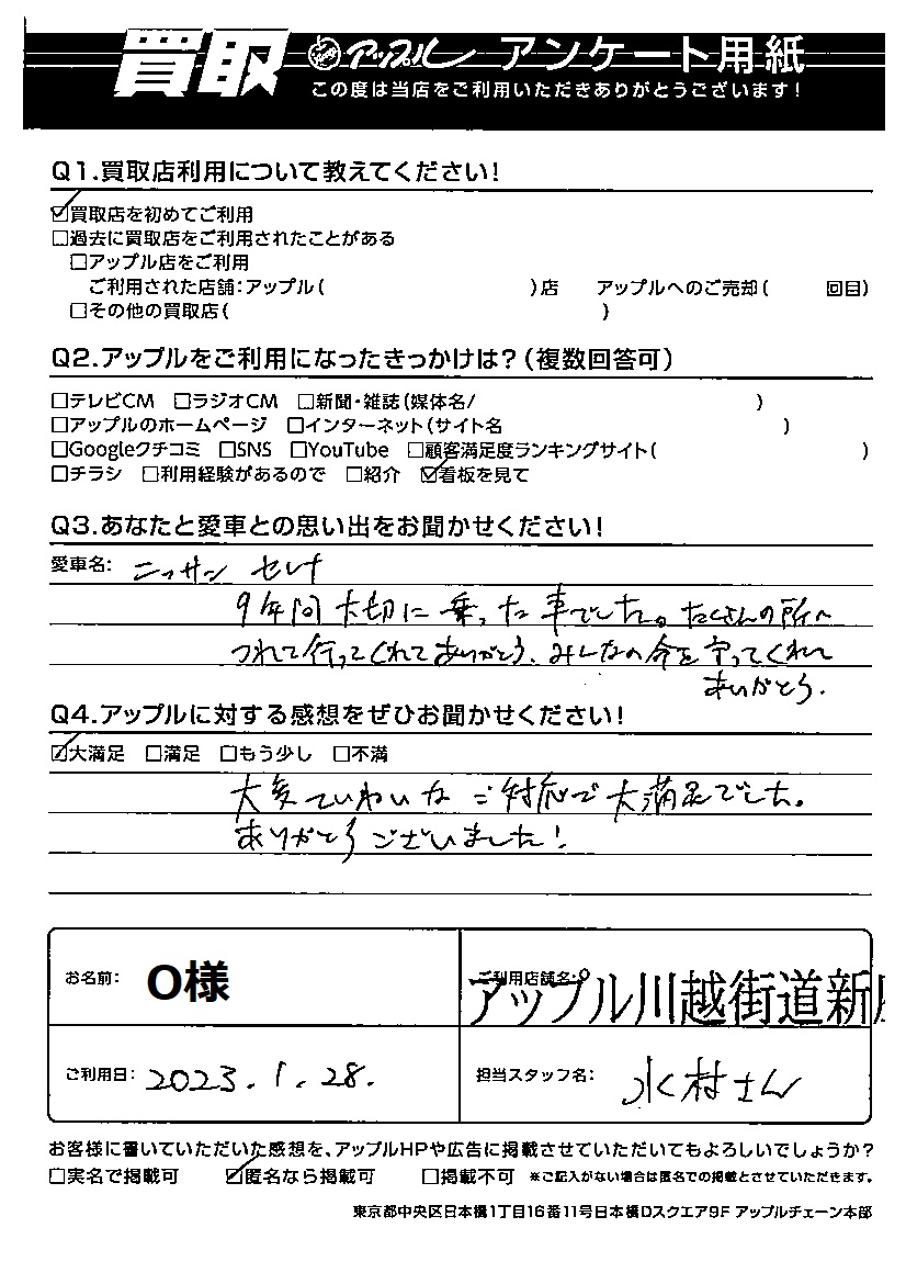 ご利用日:2023/1/28 O 様