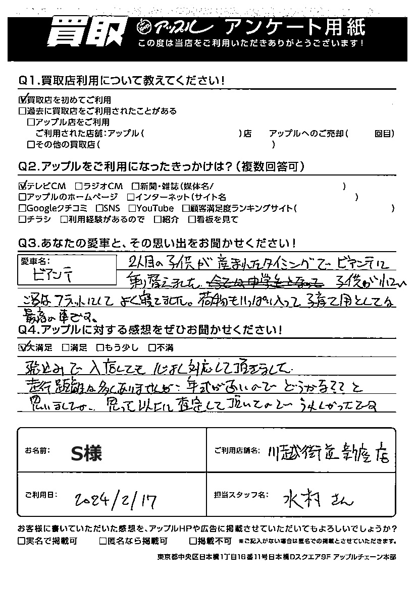 思いましたが、思った以上に査定して頂いてのでうれしかったです。