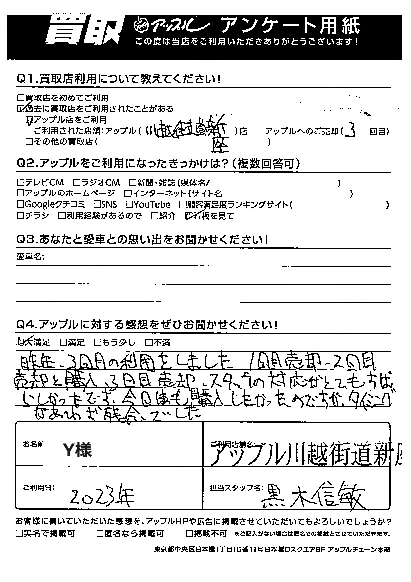 3回目売却、スタッフの対応がとてもすばらしかったです。