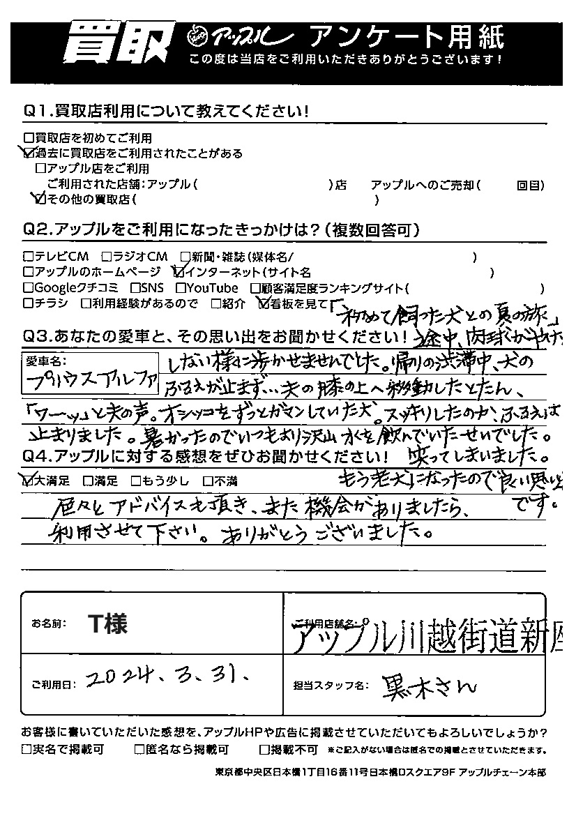 T様 車名:トヨタ プリウスα