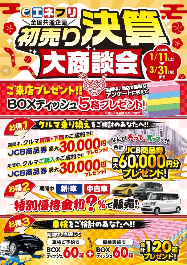 2025年1月11日~3月31日まで、初売り決算大商談会やってます!