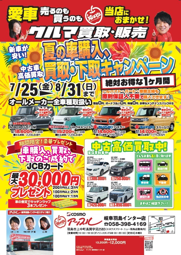 ただいま夏の車購入・買取キャンペーン実施中です♪