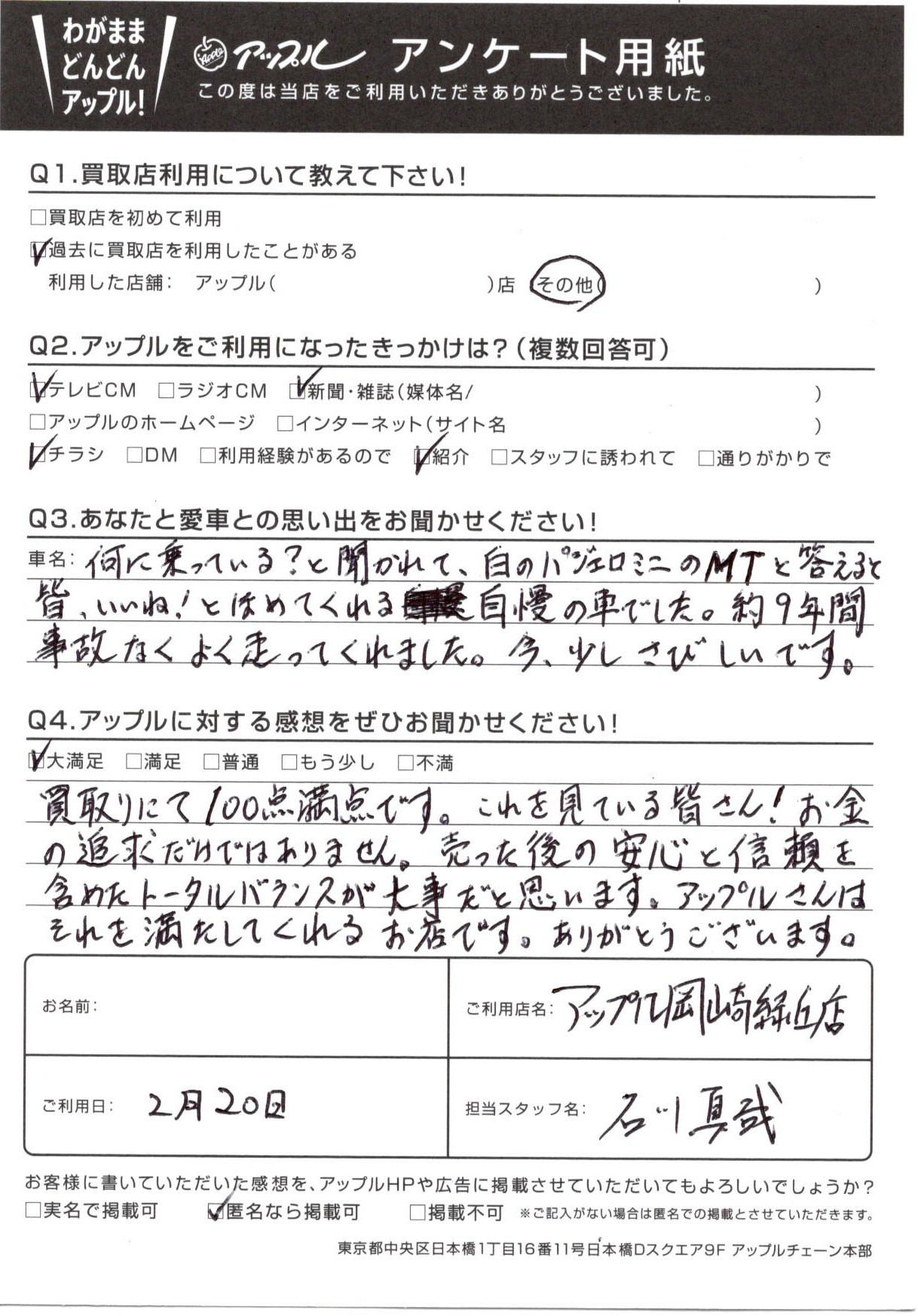 愛知県 匿名希望様 車名:三菱 パジェロミニ