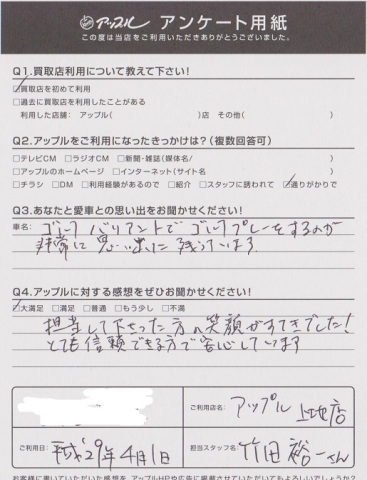 Q2.アップルに対する感想をお聞かせください!・・・担当して下さった方の笑顔がすてきでした!とても信頼できる方で安心しています。