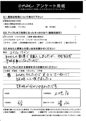 Q1.愛車との思い出をお聞かせください!・・・初めての新車で購入しましたが、やむをえず手放す事になったので。