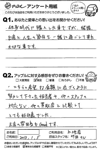 他のスタッフの対応など、他の買取店と比較してとても好印象でした。