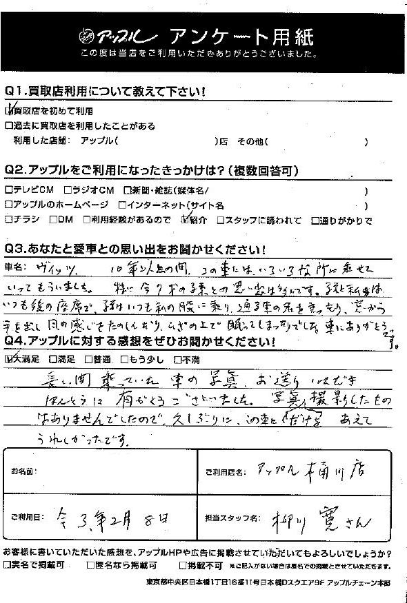 S様 車名:トヨタ ヴィッツ