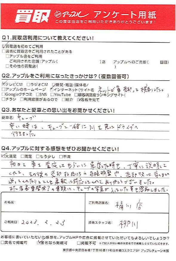 また名義変更完了の書類に、キューブの写真が入っていた事も感動しました。