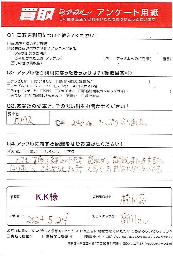 埼玉県桶川市 K.K様 車名:トヨタ プリウス(2023年3月~のPHVを含む)