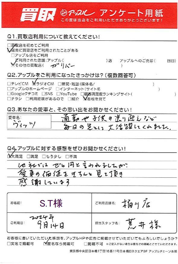 埼玉県桶川市 M.T様 車名:トヨタ ヴィッツ