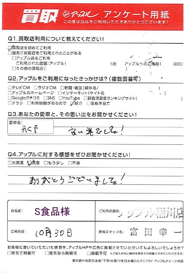 お車のご相談・ 査定だけでもOK! カンタン 入力 30秒 アップルがブランド買取始めました! お電話でも受付中! 受付時間9:30 ~ 19:00 048-783-2474 お車のご相談・ 査定だけでもOK! カンタン 入力 30秒 アップルがブランド買取始めました! お電話でも受付中! 受付時間9:30 ~ 19:00 048-783-2474 アップルがブランド買取始めました! お電話でも受付中! 受付時間9:30 ~ 19:00 048-783-2474 店舗情報 在庫車 スタッフ紹介 ブログ お客様の声 キャンペーン 無料査定 click お客様の声 ご記入日: 2024/10/30 埼玉県北本市 S商品様 車名:レクサス RC F ・あなたと愛車との思い出良い車でした!・アップルに対する感想ありがとうございました! 前へ 次へ お客様の声一覧を見る