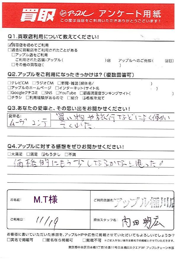 お車のご相談・ 査定だけでもOK! カンタン 入力 30秒 アップルがブランド買取始めました! お電話でも受付中! 受付時間9:30 ~ 19:00 048-783-2474 お車のご相談・ 査定だけでもOK! カンタン 入力 30秒 アップルがブランド買取始めました! お電話でも受付中! 受付時間9:30 ~ 19:00 048-783-2474 アップルがブランド買取始めました! お電話でも受付中! 受付時間9:30 ~ 19:00 048-783-2474 店舗情報 在庫車 スタッフ紹介 ブログ お客様の声 キャンペーン 無料査定 click お客様の声 ご記入日: 2024/11/19 埼玉県桶川市 M.T様 車名:ダイハツ ムーヴコンテ ・あなたと愛車との思い出買い物や旅行などによく働いてくれた・アップルに対する感想価格的にもう少しなるかなと思った! 前へ 次へ お客様の声一覧を見る