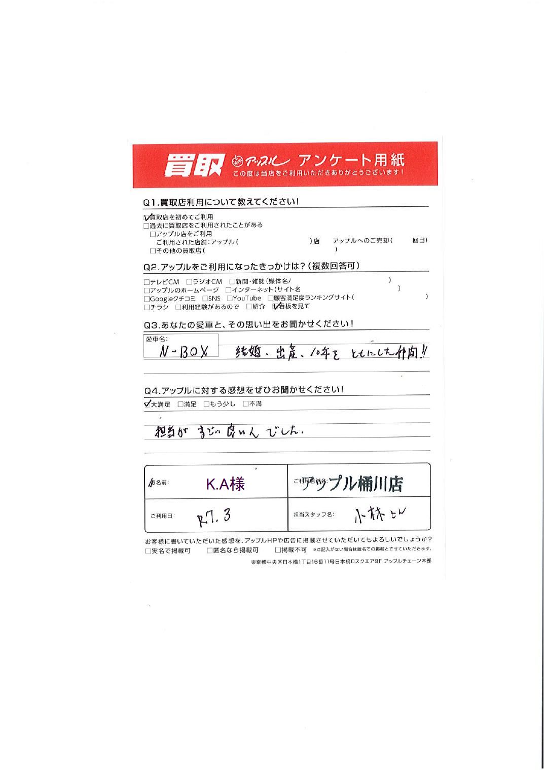 お車のご相談・ 査定だけでもOK! カンタン 入力 30秒 アップルがブランド買取始めました! お電話でも受付中! 受付時間9:30 ~ 19:00 048-783-2474 お車のご相談・ 査定だけでもOK! カンタン 入力 30秒 アップルがブランド買取始めました! お電話でも受付中! 受付時間9:30 ~ 19:00 048-783-2474 アップルがブランド買取始めました! お電話でも受付中! 受付時間9:30 ~ 19:00 048-783-2474 店舗情報 在庫車 スタッフ紹介 ブログ お客様の声 キャンペーン 無料査定 click お客様の声 ご記入日: 2025/03/14 埼玉県桶川市 K.A様 車名:ホンダ N-BOX ・あなたと愛車との思い出結婚、出産、10年をともにした仲間!!・アップルに対する感想担当がすごいいい人でした。 前へ 次へ お客様の声一覧を見る