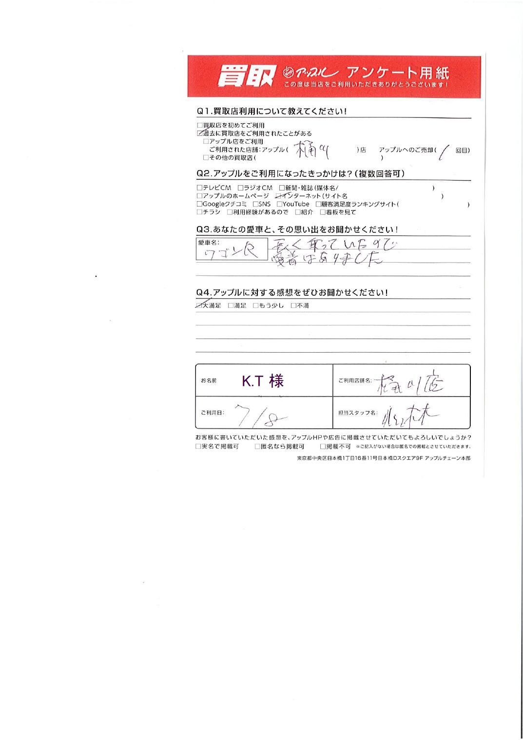 お車のご相談・ 査定だけでもOK! カンタン 入力 30秒 アップルがブランド買取始めました! お電話でも受付中! 受付時間9:30 ~ 19:00 048-783-2474 お車のご相談・ 査定だけでもOK! カンタン 入力 30秒 アップルがブランド買取始めました! お電話でも受付中! 受付時間9:30 ~ 19:00 048-783-2474 アップルがブランド買取始めました! お電話でも受付中! 受付時間9:30 ~ 19:00 048-783-2474 店舗情報 在庫車 スタッフ紹介 ブログ お客様の声 キャンペーン 無料査定 click お客様の声 ご記入日: 2025/07/08 千葉県船橋市 K.T様 車名:スズキ ワゴンR ・あなたと愛車との思い出長く乗っていたので愛着はありました・アップルに対する感想大変満足 前へ 次へ お客様の声一覧を見る