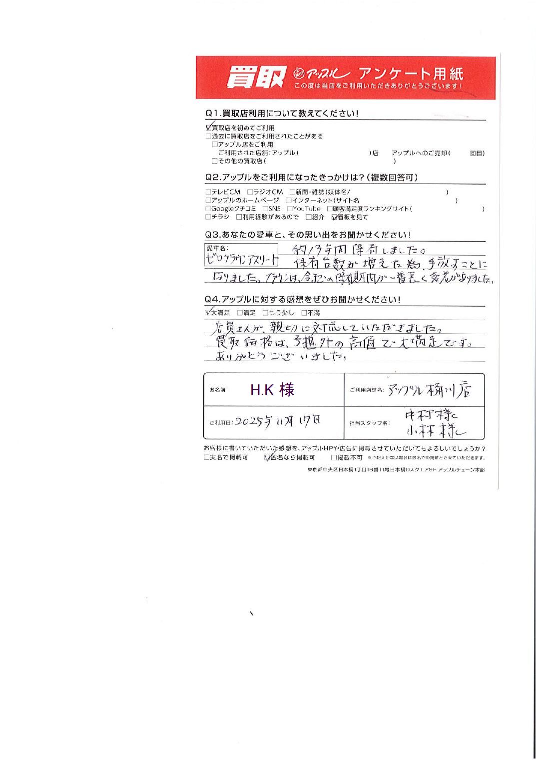 埼玉県桶川市 H.K様 車名:トヨタ クラウンアスリート (H11年9月~H30年6月)
