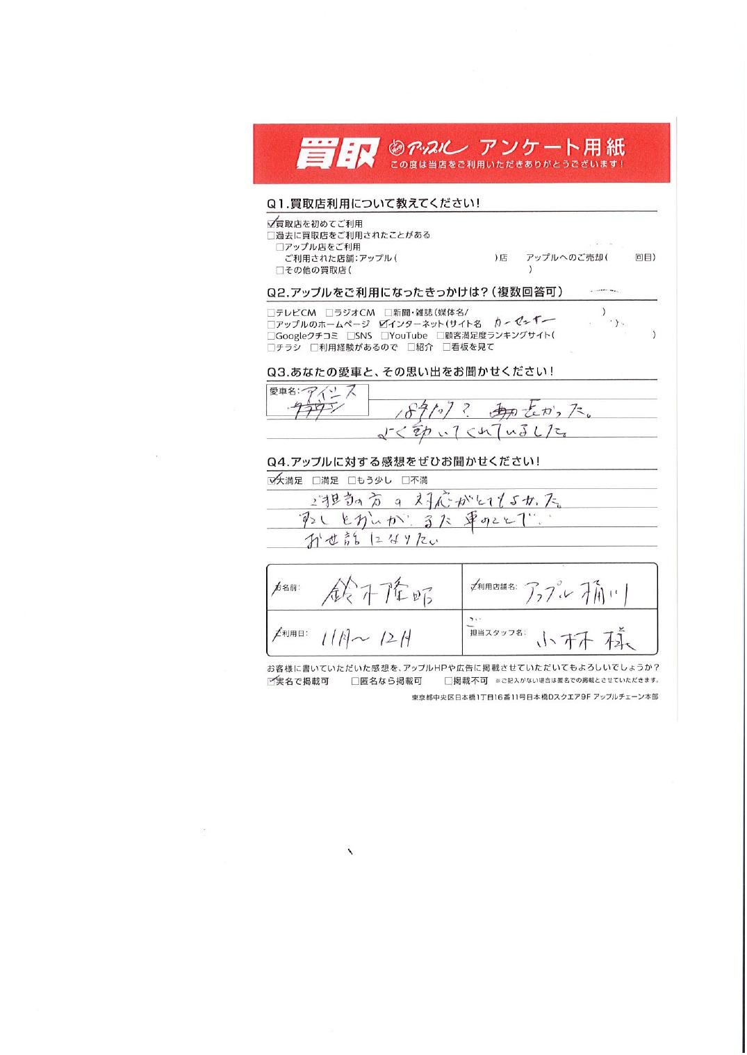 埼玉県さいたま市 鈴木 隆昭様 車名:トヨタ アイシス