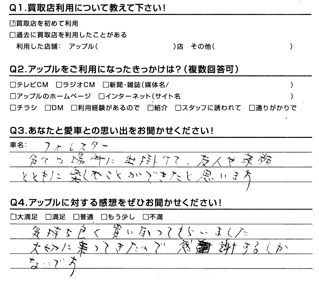 E様 車名:スバル フォレスター