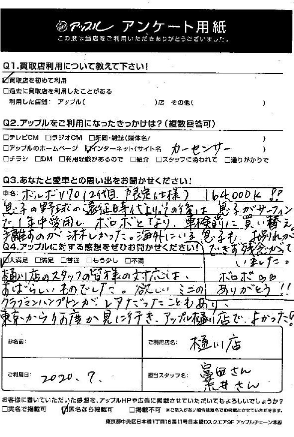 E様 車名:ボルボ V70