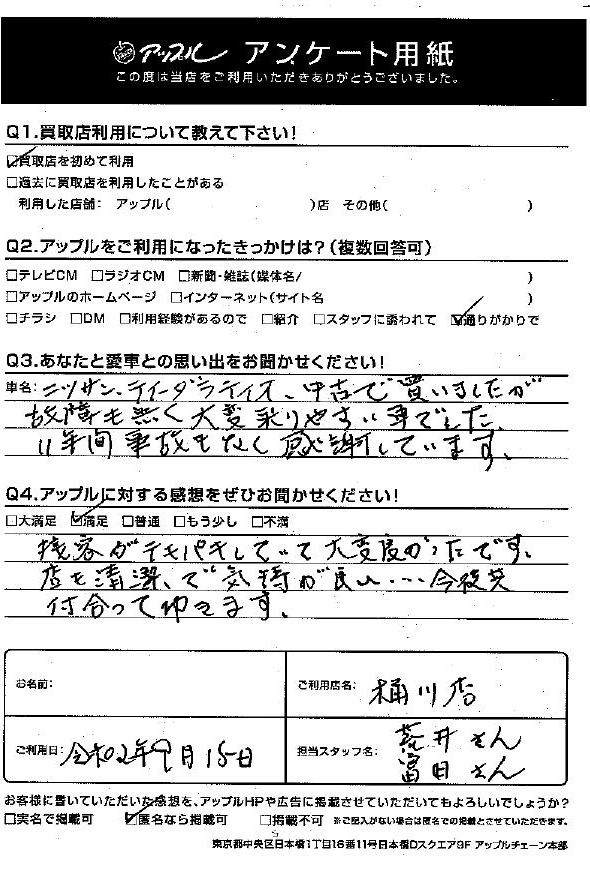 S様 車名:日産 ティーダラティオ ラティオ(ティーダ)