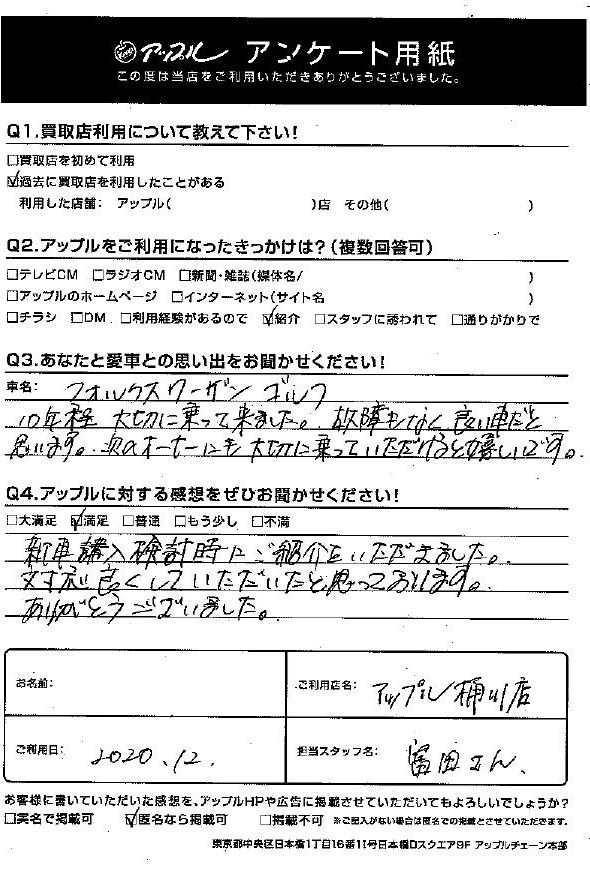 S様 車名:フォルクスワーゲン ゴルフ