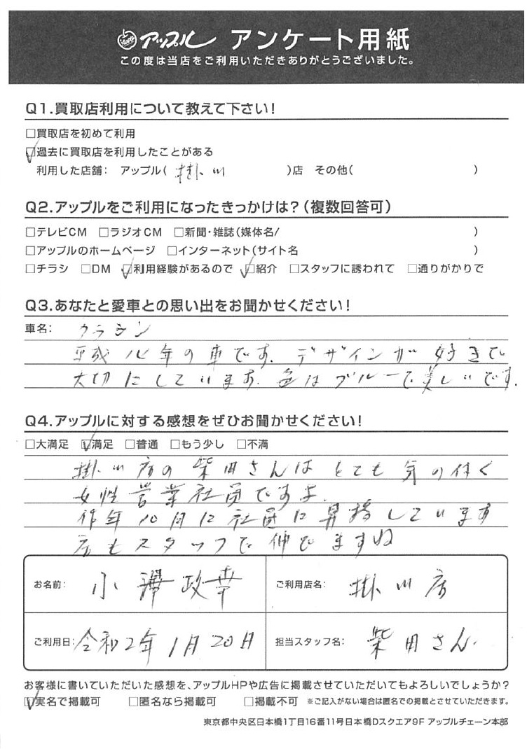 掛川店の柴田さんはとても気の付く女性営業写真ですよ。昨年10月に社員に昇格しています。店もスタッフも伸びますね。