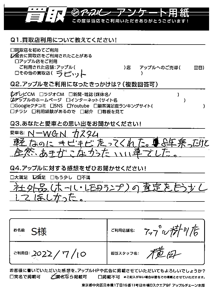 社外品(ホール・LEDランプ)の査定をもう少ししてほしかった。