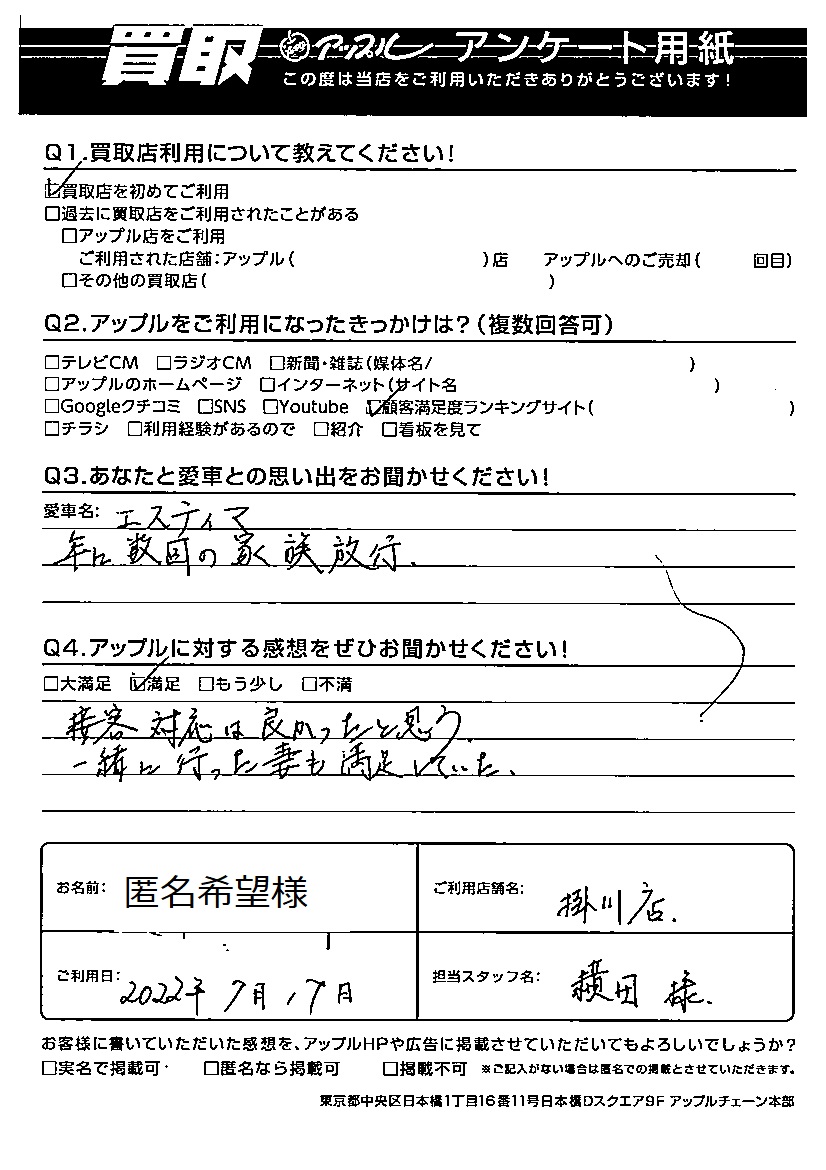 匿名希望様 車名:トヨタ エスティマ