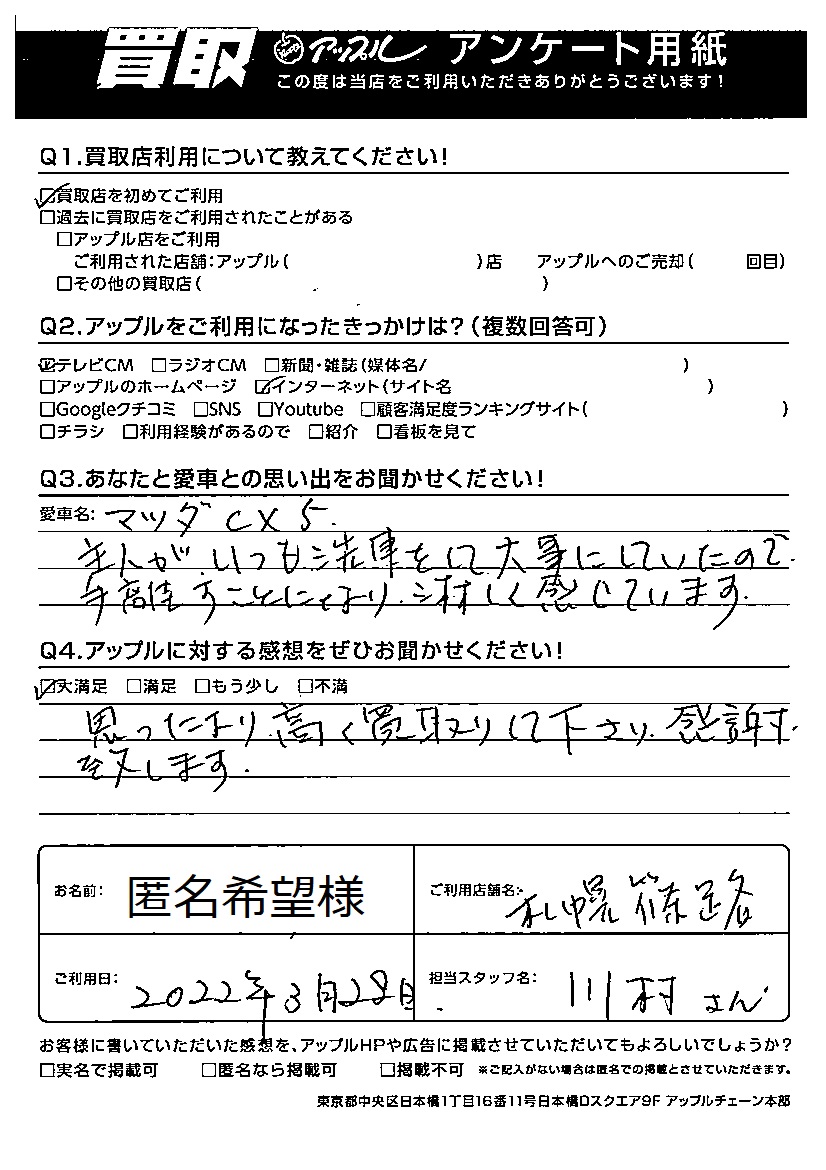 匿名希望様 車名:マツダ CX-5