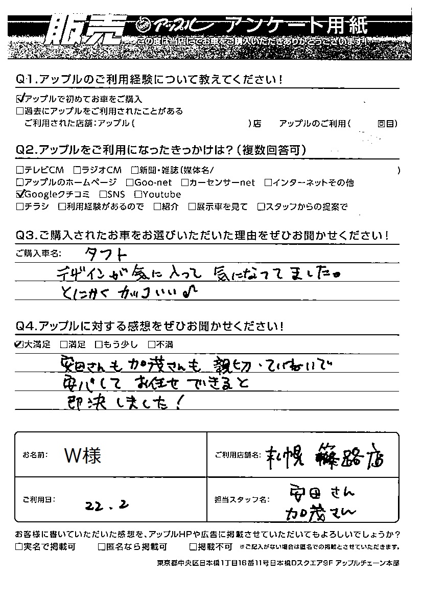 W様 車名:ダイハツ タフト