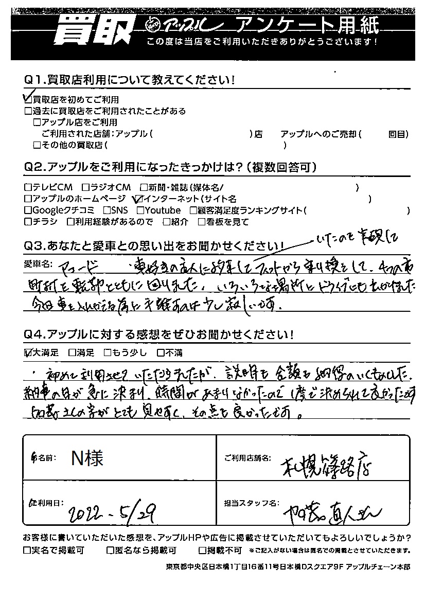 納車の日が急に、時間があまりなかったので1度で決められて良かったです。