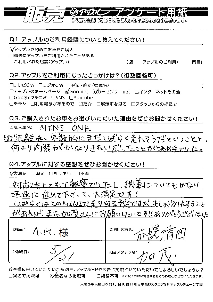 A.M様 車名:ミニ ミニ