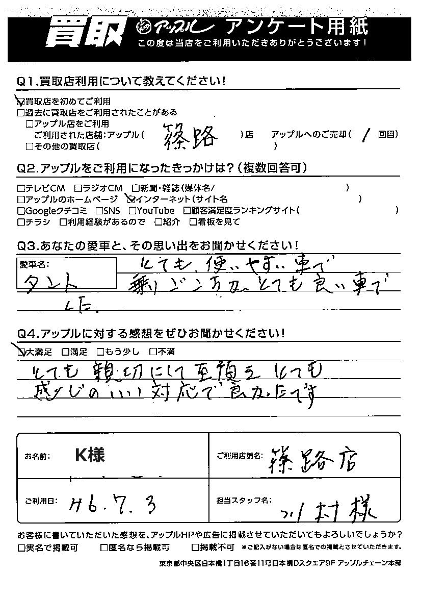 とても使いやすい車で、乗りごこちがとっても良い車でした。